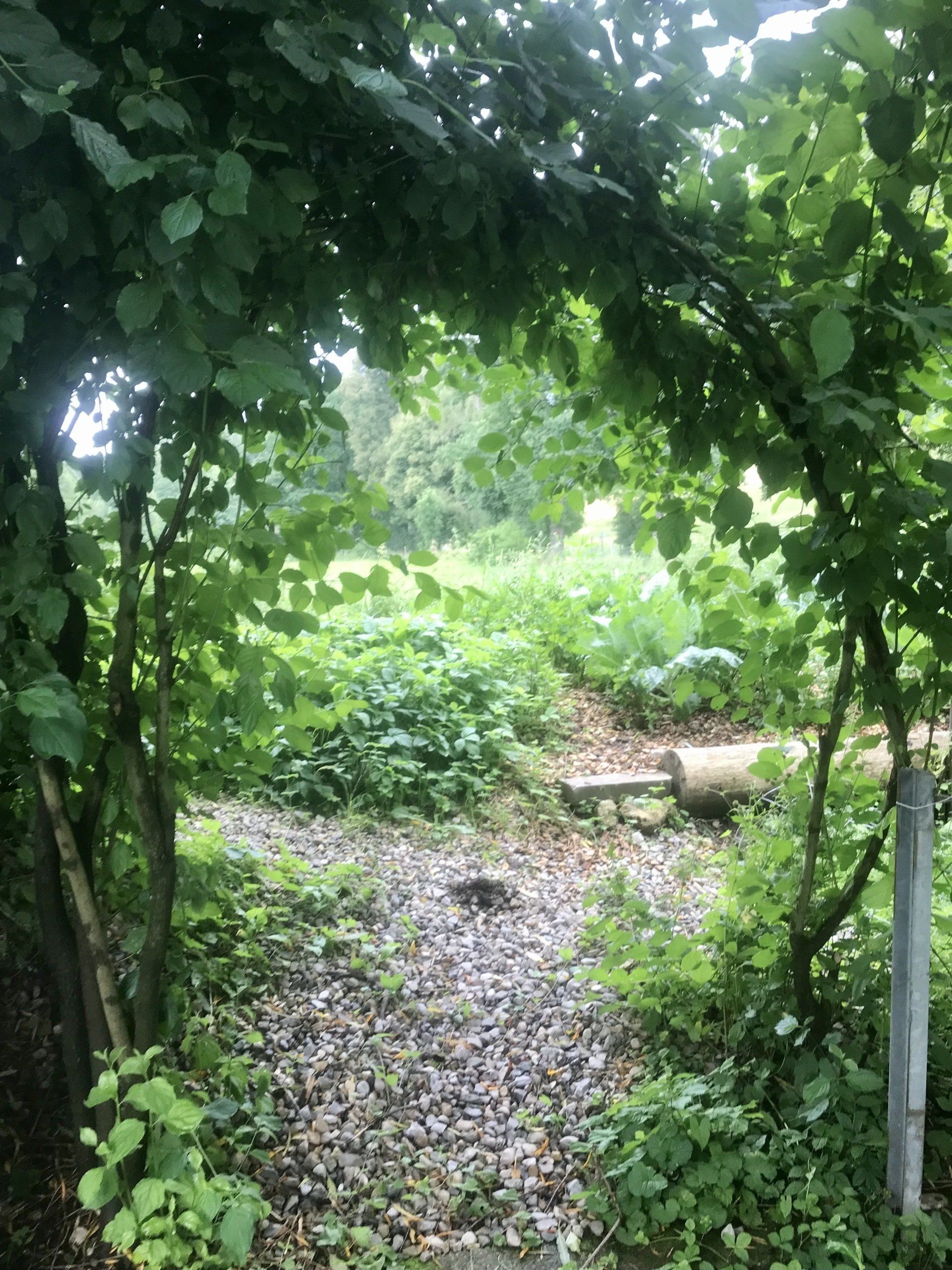 Die alte Scheune, die Seehütte am Weiher, der Feuerplatz und die satte Natur